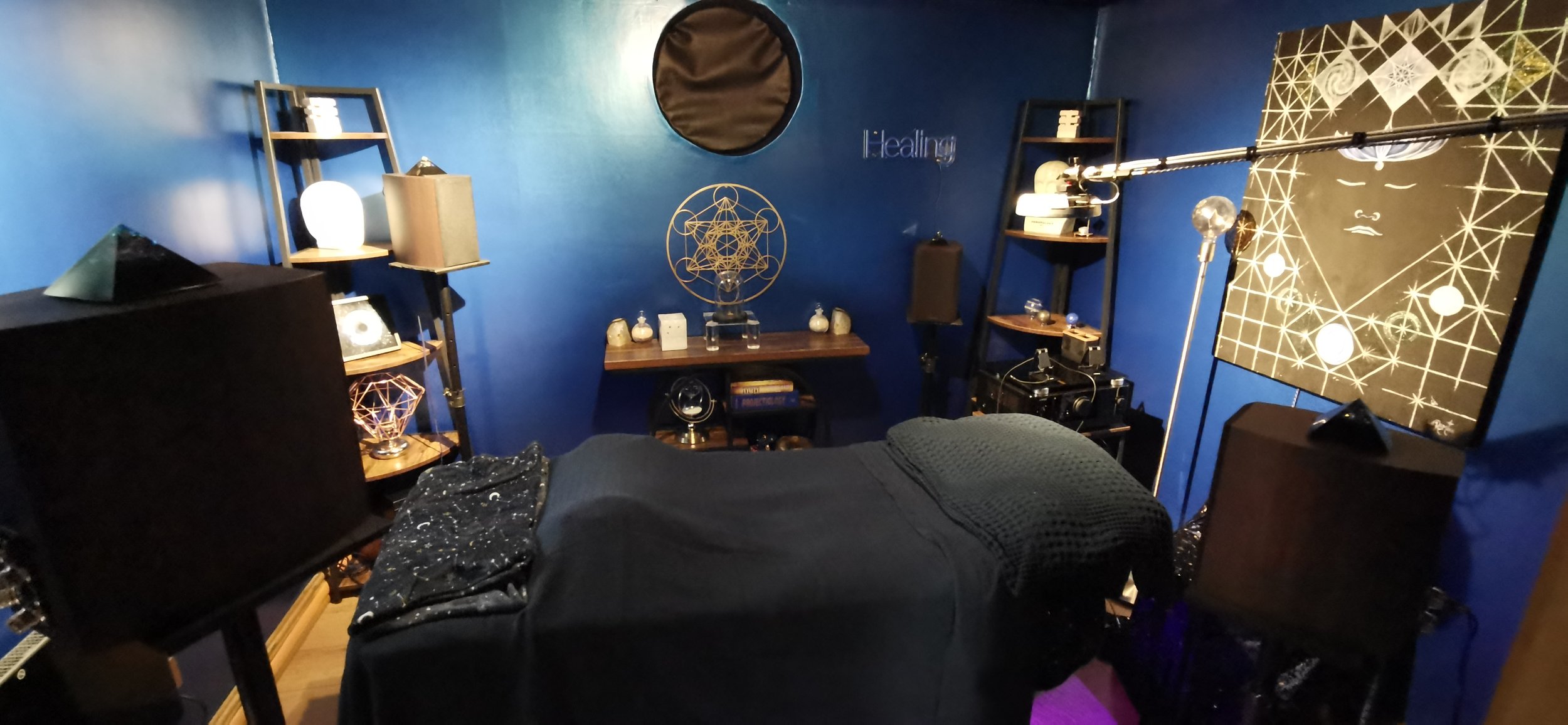 Using 4.1 surround-sound audio with binaural beats and frequency sound signatures, stroboscopic light (roxiva RX1) , and full-body transducers, the nervous system is gently guided into deep coherence, allowing physical relaxation, emotional release, and expanded states of awareness to arise safely and organically.